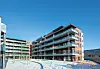 – Boligbyggene var en utfordrende bygningsmasse, som delvis henger sammen med utkraginger. Vi kunne ikke ferdigstille store flater, fordi det lenge var et innhakk i bygget fra første til tredje etasje. Det måtte vi ha for å komme inn til kranstammen med tunge hulldekker og fasadelementer. Det gjorde atkomsten til leilighetsbyggene litt mer krevende for oss, siden vi måtte holde igjen den U-en ganske lenge. Det gjorde at vi ikke ble ferdig med tettingen der så raskt som vi ønsket, forklarer Espen Torgersen, Seltors prosjektleder for boligbyggene.