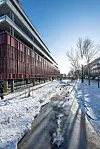 Den nye delen ligger mot nord og er koblet sammen med et mellombygg med et lettak, der det også er en gangbru i andre etasje som binder den eldre og den nye delen sammen. Senterets to etasjer og de tre parkeringsetasjene (med over 200 p-plasser), har et bæresystem med stål og hulldekker.