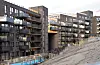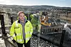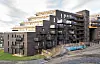 – Vekten på betongelementene var styrende når det gjaldt kranløsning. For å ha tilstrekkelig løftekapasitet, og siden byggene er så lange, hadde vi to tårnkraner som gikk på kranbaner på oversiden og fulgte produksjonen. Da trengte vi bare to kraner, og ikke tre. Det fungerte overraskende bra. Terrenget gjorde at riggplassen ligger på høyde med byggenes sjette etasje. For å spare tid fikk vi etablert gangbaner for å frakte materialer direkte inn i bygget, forklarer Breian.