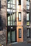 Det er mange heve- og skyvedører i prosjektet, som hver veier opp imot 400 kilo. Det var tidlig fokus på arbeidsmiljø når det gjaldt montering av disse. Det ble besluttet å heise dem inn i råbyggfasen og å benytte vindusroboter i etterkant for selve monteringen.