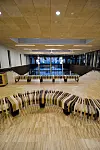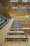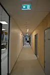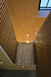– Det er bruken av massivtre som kjennetegner bygget. Det er mye synlig treverk i bygget, og også på fasaden er det utstrakt bruk av fritthengende og dels buede spiler av tre. Vi har også fått bort en del påforingsgips for å få fram mer massivtreet. Veidekke har løst oppgaven i detalj, sier Stokker.