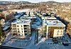 – Prosjektets arkitektur er nedskalert mot et byvillapreg for å passe inn i omgivelsene. Samtidig har vi hatt fokus på at leilighetene skal henvende seg ut mot romslige, private terrasser og balkonger, og videre hvordan arkitekturen i prosjektet forholder seg til de opparbeidete grønne felles utearealene på eiendommen ved å tilrettelegge for små møteplasser på tunet mellom bebyggelsen, sier Andersen.