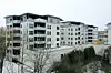De fire blokkene er ført opp med prefabrikkerte elementer.