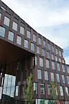 Signalbygget er utformet som en portal. De tre øverste etasjene strekker seg som en bro over en åpen plass samt det nye serveringsbygget og det naboliggende Brodahl-bygget.