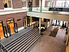 – Inngangen har et veldig fint glasstak, som skiller seg ut. Det har dragere av glass og glassbæring istedenfor stålbæring. Ellers er det primært brukt gips, og noe perforerte plater på de innvendige flatene i nybygget. Den utvendige fasaden er kledd med glass og aluminium i første og fjerde etasje, og royalimpregnert tre i andre og tredje etasje, sier han.