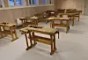 Foajeen og kantinen i kulturhuset har tresøyler og limtredragere som bærende byggesystem.