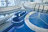 Også innholdet i bygget har gjort byggearbeidet krevende. BWT Birger Christensen ble involvert i en tidlig fase som ansvarlig for vannrenseanlegget. Hovedetasjen med bassengene er 3308 kvadratmeter. Etasjen under på 2580 kvadratmeter er stort sett fylt av teknisk utstyr. Noen store grå tanker med sandfilter sørger for at vannet i bassengene holdes rent. Det er totalt fire slike renseanlegg. Bassengene er fundamentert direkte på grunnen.