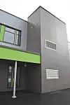 – Begge nybyggene er reist med tradisjonell byggeteknikk med plasstøpt betong, bæring i stål og betongdekke. Yttervegg er uført med tradisjonelt bindingsverk og kledd med fasadeplater i kompakt høytrykkslaminat, forklarer Edvard Kløven.