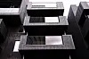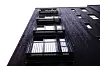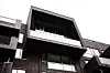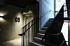 Innvendig er betong fra konstruksjonen et dominerende materiale på overflater. I trappeoppganger er det rustikk stil med slipt betong på gulv og ubehandlet betong på vegger. Takhimlingene er sorte trespiler.