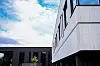 Nybygget er formet i vinkel i to etasjer, med teknisk rom i tredje etasje.