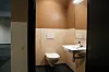 – Innvendige vegger er i stor grad eksponert betong som er impregnert. Gulvene i inngangspartiet er slipt betong, mens det i resten av bygget er linoleum gulvbelegg. På innvendige veggflater er det mye slitesterk kryssfiner. Det er gjennomført tiltak for å sikre god lyd. Blant annet er mye av kryssfineren perforert. Vi har også hengt opp reinlav på vegger. Det er perforert gips på vegger og i tak, og også vanlig systemhimling i tak, forklarer prosjektlederen. Han nevner bruk av sensorteknologi på toalettene som en kvalitet. På den måten kan man følge med på når det må etterfylles og vaskes.