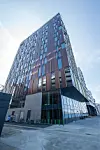 De fullisolerte fasadeelementene er prefabrikkert i Litauen, og er montert som byggesett på plassen. Prosjektet har også prefabrikkerte baderomskabiner, samt noen plassbygde bad der hvor utformingen er annerledes enn standarden.