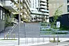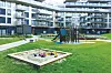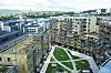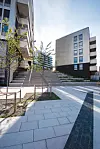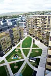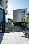 Selv om det er åpent for offentlig ferdsel, gir nivåforskjellen fra trappeløpet i nordvest opp til gårdsrommet, et felles skjermet areal for beboerne.