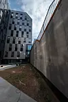 På grunn av den vanskelige tilkomsten på tomten som en følge av den bratte tomten, har Veidekke også valgt en løsning med prefabrikkerte fasadeelementer som har blitt heist inn med tårnkran. Elementene har deretter blitt blåseisolert på innsiden.