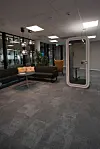 – Vi har også sømløs adgang med kort eller mobiltelefon, hvor både dører, garderober, skap, kantine og alt annet du trenger, er samlet på ett kort eller på mobiltelefonen. I tillegg er det et fullintegrert 5G-anlegg i bygget med 110 antenner fra parkeringsgarasje til kontorene, sier Tore Humberset.