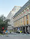 Universitetsgata 7 – 9 vender ut mot Universitetsgata og Pilestredet, og består av tre bygg, som går sammen fra tredje etasje og opp. Innenfor ligger utkragede møterom med mosevegg på hver side. På bakkeplan er etasjen ekstra høy, der folk ledes inn i gatetun og passasjer.