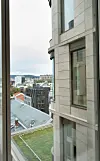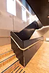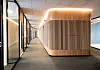 I tillegg til avtrappingen i bygningsmassen, bidrar de avrundede hjørnene – også i vindusfeltene – til et mindre massivt og et mykere uttrykk. Staticus har prosjektert, levert og montert natursteinsfasaden som består av glass, aluminium og travertin – en italiensk type kalkstein. Med et gyllent og varmt uttrykk, er travertin på slett ikke nytt som byggemateriale; den skal være brukt både i Colosseum og i Fontana di Trevi i Roma.