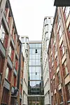 Avtrappinger i høyden bidrar visuelt til et «lavere» bygg sett fra gateplan, men er også avgjørende som et bidrag til å gi optimalt med dagslys ned i gatetun og passasjer. Avtrappingene og takterrassene er kledd med sedum, og gir et grønt uttrykk både fra kontorarealene og fra nabobebyggelsen.
