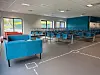 I andreetasje er en romslig kafeteria sentralt plassert. Den har et vel innredet storkjøkken, samt tørrlager og kjølerom. Kafeteriaen vender ut mot tribuneanlegget, som er på begge sider av den veldige hallen. Etasjen har også et stort møterom, to tilsvarende sosiale rom tilrettelagt for e-sport, og buldrerom på 200 kvadratmeter. En gangbru binder andreetasje i Flerbrukshallen sammen med Strandahallen.