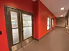Hovedetasjen rommer en stor og strømlinjeformet foaje, med resepsjon og personalerom. Her er også heis, kontor for vaktmester, garderober både for lag og trenere, to fulle håndballhaller av internasjonalt format, med tilhørende boder og lagerrom under tribunene. Førsteetasje rommer i tillegg en aktivitetshall på 500 kvadratmeter, samt styrkerom. Aktivitetshallen er tiltenkt aktiviteter som kampsport og dans.