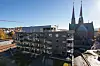 – For at kirken fremdeles skal ha en fremtredende plass i aksen mot nord, og at parkeringsplassen mot Lietorvet ikke skal virke tung og lukket, er boligenes vestfasader mot plassen utformet med et lettere materialuttrykk med balkongmotiver og vindusfasader som hovedmateriale. I tillegg til en amfitrapp opp til utearealet mellom boligene. Denne bidrar samtidig til å gjøre uterommet mellom boligene offentlig tilgjengelig. Sydfasaden mot kirken vil bli utformet i en arkitektonisk sammenheng med kirkebygget og de øvrige fasader i byrommet, der materialbruk og en nyansert volumoppbygging vil være med på å bidra til dette, legger han til.