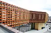 – Veven består av malmfuru-stendere og plater fra Spania. Vi har freset ut hull i stenderne, og tredd disse plateskivene på skrå mellom dem. Dette har vært et samarbeid med Optimera Byggsystemer. Platene kom nesten helt ferdige, og ble løftet på plass. Det er et godt eksempel på samarbeid mellom byggherre, arkitekt, konsulenter, entreprenør og leverandør. Det hjelper at vi har gode relasjoner til Optimera som turte å gjøre og hadde kompetanse på dette, legger en tydelig fornøyd prosjektleder til. At bygget i tillegg heter VEV, gjorde at dette var noe som var viktig å få til.
