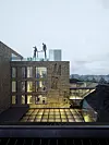 Bakgården mellom den nye og gamle delen var også krevende, da det opprinnelig var ønske fra Byantikvaren om at den skulle være åpen. Her kom man frem til en løsning med et glasstak, og det ligger over et av galleriene.