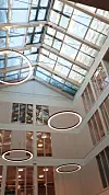 – Vi skulle tilpasse bygget til et eksisterende bymiljø, med en trang tomt, samtidig som det var snakk om et komplekst bygg der mange funksjoner og tjenester skulle på plass, sier hun, men er også klar på at man lyktes godt med jobben: