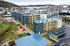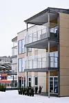 Prosjektet er tegnet av PV Arkitekter, som har valgt å kle de tre og fire etasjers blokkene med både Cembrit- og Steni-plater og royalimpregnert kledning.