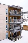 Underveis i prosjekteringen, og mens fundamenteringen var i gang, ble det for boligdelene valgt å gå fra plattendekker til hulldekker. Det ble vurdert som en mindre utsatt og raskere fremdriftsmessig løsning, siden man da ville slippe påstøp med under usikkert og kaldt klima. Foruten at man også måtte benytte dekkestøtter i lang tid.