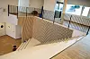– Det er hele veien prioritert robuste materialer som skal holde lenge. I andre etasje er det gipsvegger og noen trevegger, mens det i første etasje er gips, med finerplater kombinert innslag av stål på den nederste halvdelen av veggene, sier Hesvik. I takkonstruksjonen er det benyttet q-dekker tekket med takbelegg.