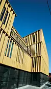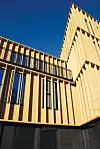 Arkitekten har gjort flere grep for at bygget ikke skal ruve for mye i området, som blant annet at bygget ikke har noen markert for- eller bakside. Bygningskroppen er avlang, og kledd med trematerialer.