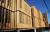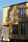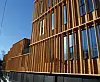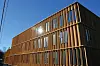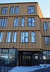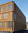 – Grunnarbeidene gikk greit, men vi møtte noen overraskelser. Grunnen består i stor grad av morenemasser, noe vi ikke var helt forberedt på. Vi kom likevel i havn på en bra måte, og byggearbeidene ble startet opp høsten 2019. Underetasjen er utført i vanntett plasstøpt betong. Det er veldig høy grunnvannstand i området, noe vi må ta ekstra hensyn til. Oppover i etasjene er det etasjeskillere i massivtre, med ti centimeter påstøp. Råbygget er for øvrig reist med stålkonstruksjoner og fasadene består av egenproduserte veggelementer. Disse ble satt sammen, komplett med vinduer, i et eget lagerområde av våre egne folk, og fraktet hit og montert. Elementene er kledd med superwood-kledning. Denne er vedlikeholdsfri og sopp- og råtebestandig. Det er igjen montert skråstilte spiler på utsiden av kledningen, forteller Mjelde. Dette er både et arkitektonisk grep og et solskjermingstiltak.