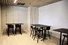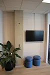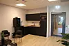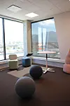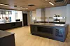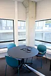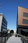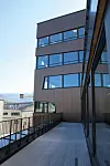 I byggets hovedetasje finnes både kantine, kjøkken og flere fellesområder i tillegg til kontorer. I etasjene over de to blokkene er det gjort klart for en rekke kontorplasser.