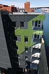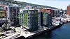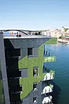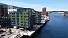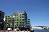 – Store deler byggene har dobbel fasade, der den ytterste glassfasaden tar opp igjen noe av historien fra tomten med en stor kran som sto på området tidligere. Dette gir prosjektet en ekstra dimensjon, påpeker Vedelden. Hun forteller de måtte arbeide litt ekstra for å finne en god metode for å feste inn denne glassfasadeløsningen på platene.