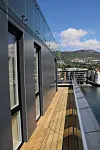 Alle leilighetene har tilgang til egen balkong eller markterrasse, og de største leilighetene har også to balkonger, som da sikrer både utsikt og sol fra flere kanter.