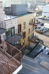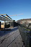 Fasaden består av tegl, trekledning og Cembrit-plater. Taket er isolert og tekket, og mesteparten av tak-arealene består av terrasser og grøntområder.