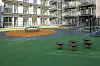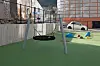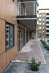 Solforholdene er gode og beboerne deler en stor takterrasse. Alle leilighetene har privat uteareal og flere leiligheter har to balkonger eller terrasser. I underetasjen er det 35 biloppstillingsplasser (to av dem HC-plasser) for dette trinnet og 402 sykkelparkeringsplasser.