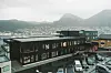 Det er også gode fellesrom i bygget, og ikke minst flotte uteområder både i form av park på utsiden og store fellesterrasser der beboerne kan sitte og se skipene gå rett forbi.