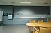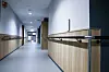 På dette bygget er varme og kjøling lagt i taket, og innetemperatur reguleres etter utetemperatur. Bad og enkelte soner i korridorer har vannbåren varme i gulv.