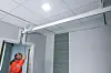 – Vi bygde først opp bæresystem for fasthimling, med påfølgende framføringer for elektro, ventilasjon og sprinkler. Så lektet vi opp for varmesløyfer, ventilutsparinger, innfelte lys og så videre. Så kom varmefordelingsplater, vannbårne rør, og til slutt akustikkgipsen i taket. Vi måtte også legge til rette for innfelte skinner til takheiser. Det var et puslespill.