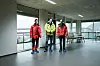 Byggeindustrien fikk erfare hva prosjektlederen sikter til da vi var og så på bygget. Det regnet vannrett, og var storm i kastene.