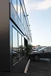 – Planløsningen åpner for god visuell kontakt særlig mellom kundemottak og verksted. Glassarealer på fasadene er begrenset til butikk, kundemottak og konferanserom for å begrense varmetap og imøtekomme en god energiøkonomisering. Glassarealene binder sammen de to bilanleggene som nå utgjør et komplett biltun for Sandegruppen. Det er vektlagt å nytte robuste materialer som har lang levetid. Hovedutfordringen med bygg som dette er å formgi en planløsning som gir effektiv og god drift med smidig flyt for mange funksjoner samlet på ett sted, sier Hammer.