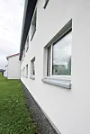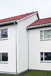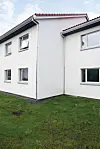 Sto-puss og inntrukne vinduer av tre med beslag av aluminium skal gi fasadene lang levetid.