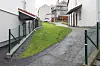Det er parkering på øst, sør- og nordsiden av bygget. På sør- og vestsiden er det opparbeidet plen.