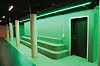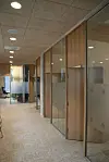 På gulvene er det de fleste steder terrassofliser, mens det i noen områder er benyttet belegg, samt teppefliser i kontordelen.