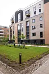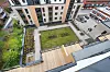 – For oss var det en utfordring. Siden vi utnytter en sentrumstomt 100 prosent, fikk vi ikke gratispoeng ved å beholde eksisterende jordlag, trær, busker og grøntområder. Hele tomta besto jo av eksisterende bygningsmasse. Alle poengene vi skulle ta, måtte oppnås ved tiltak vi gjorde selv. Det har resultert i et grønt gårdsrom og to grønne takhager. På takhagene er det lagt ned store ressurser, med avskjermede soner, beplanting og sittebenker, sier Rønneberg.
