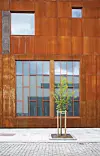 Holm forteller at det ble jobbet mye med det arkitektoniske uttrykket for de to volumene. Intro skal være et ikonbygg som skal speile nabobygget Nitja – senteret for samtidskunst. – Derfor valget vi et moderne uttrykk med cortenstål i fasadene. I biblioteksdelen er det tegl som skal understreke varige verdier; trausthet, soliditet og langsiktighet, mens tårnbyggets fasader er kledd med Alucubond for å gi et mer moderne uttrykk, forteller Holm.