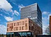 EKKO og INTRO er knyttet sammen i et glasskledd mellombygg, som foruten å inneholde hovedinnganger og et mingleområde også skal kunne by på en kafé.