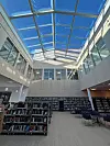 Bygget, som totalt er på cirka 5.400 kvadratmeter, inneholder en rekke ulike rom og funksjoner. Bygningsmassen omfatter blant annet bibliotek, ungdoms-